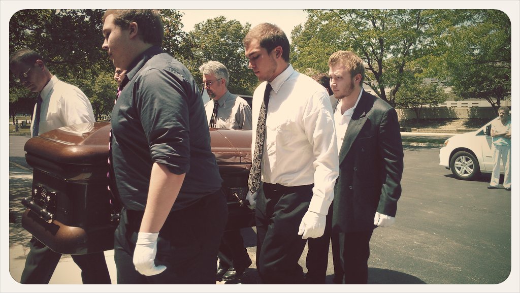 My three sons carry their grandma’s casket. She would be so proud of them for doing that for her.
