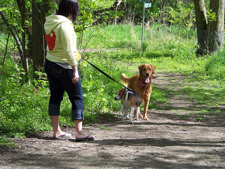The man thought a moment and then turned back toward the road and continued the way he had been going with his dog.